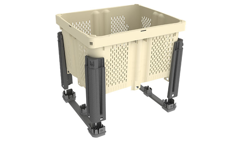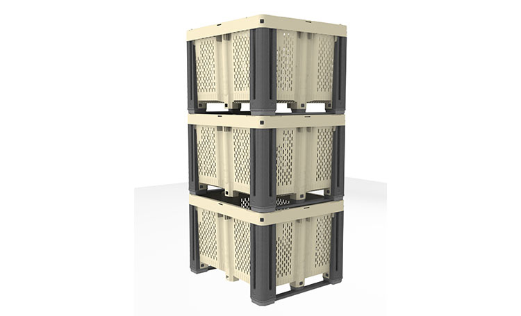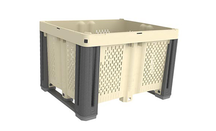The Hybrid 1012 is our most versatile plastic bin ever! It is exceptionally strong with a load capacity of 1,102 lbs. (500 kg), perfect for the toughest harvest, handling, storage, or shipping applications. Ventilation can be configured for the specific application or can be completely solid. Our new innovative columns are designed to act as bumpers, absorbing and recoiling impact to prevent breakage, greatly increasing the bin’s durability. This ultra-strong bin can also be stacked high with heavy loads. Column and feet inserts allow the bins to nest when empty and can then be locked into place permanently or removed for returnable shipping and storage.