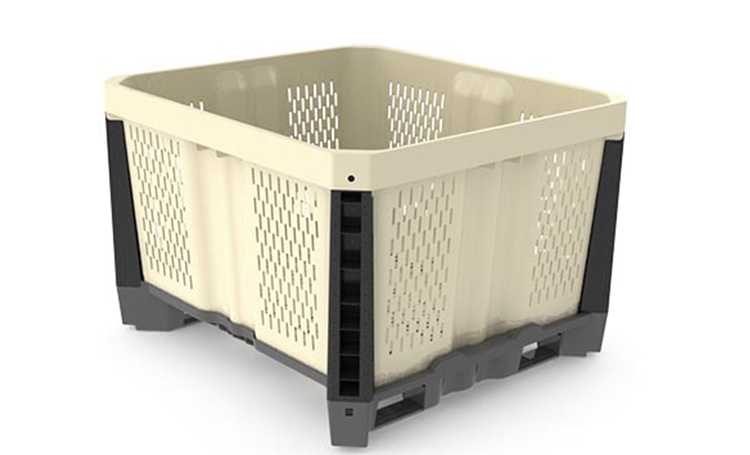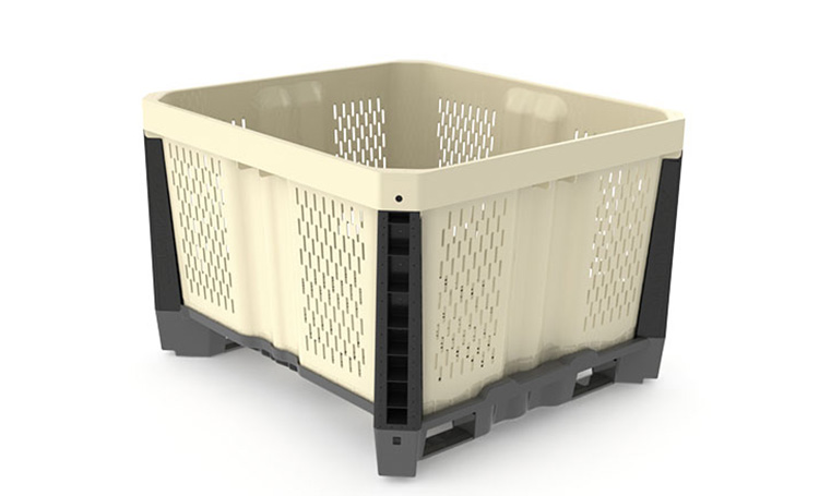 The ultra-light, yet strong, Hybrid 44P is a revolutionary plastic bin. It easily assembles in seconds to offer a great bin solution for handling, storing, or shipping agricultural product. Ventilation can be configured for the specific application, or can be completely solid. Shown here is the fully ventilated version, indicated by the suffix “-FV”. When empty it is easily disassembled and nested for efficient empty storage or efficient freight. This makes it a perfect returnable shipping bin solution, and why its moniker has become the “Shipper Bin”