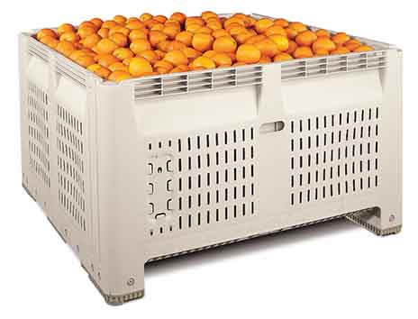 The MacroBin series of bins are our most popular line of bulk harvest and storage bins. They are durable, yet still lightweight and easy to handle, ideal for vegetables, fruits, or nuts. These high-pressure, injection-molded rigid wall bins have been designed specifically to overcome the shortcomings of wood and previous generation bins.
