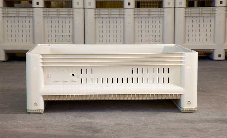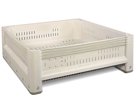 With smooth surfaces and a shallow interior depth of only 12 inches, the MacroBin 14-FV is designed to pamper your delicate fruits and vegetables. Product cuts and abrasions are reduced, and with nonporous surfaces the risk of product breakdown from mildew growth is minimized. The MacroBin 14-FV has runner style feet and two-way entry on a virtually square footprint.