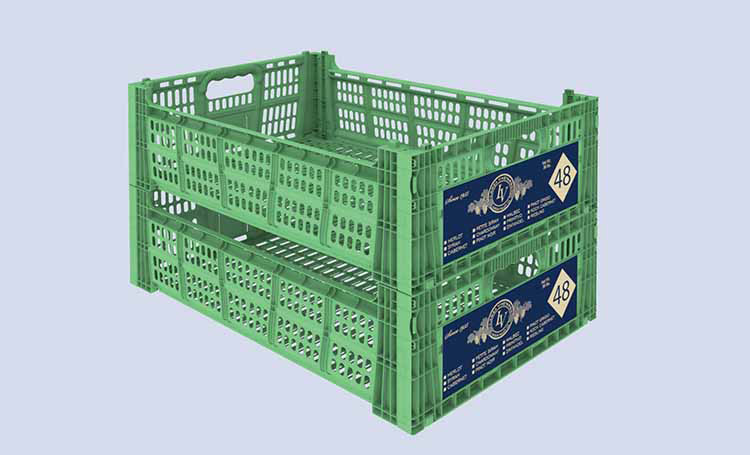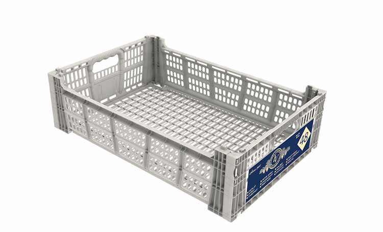 The single-piece, injection-molded MacroTote 5-FV with living hinges has been designed to be extremely lightweight, collapsible, and reusable making it one of the best new totes on the market for the one-way shipment of produce. Transferring weight down the corner columns when stacked, the full totes can be stacked 5 down, 10 high per pallet, and once collapsed, can be returned with 175 totes per pallet.